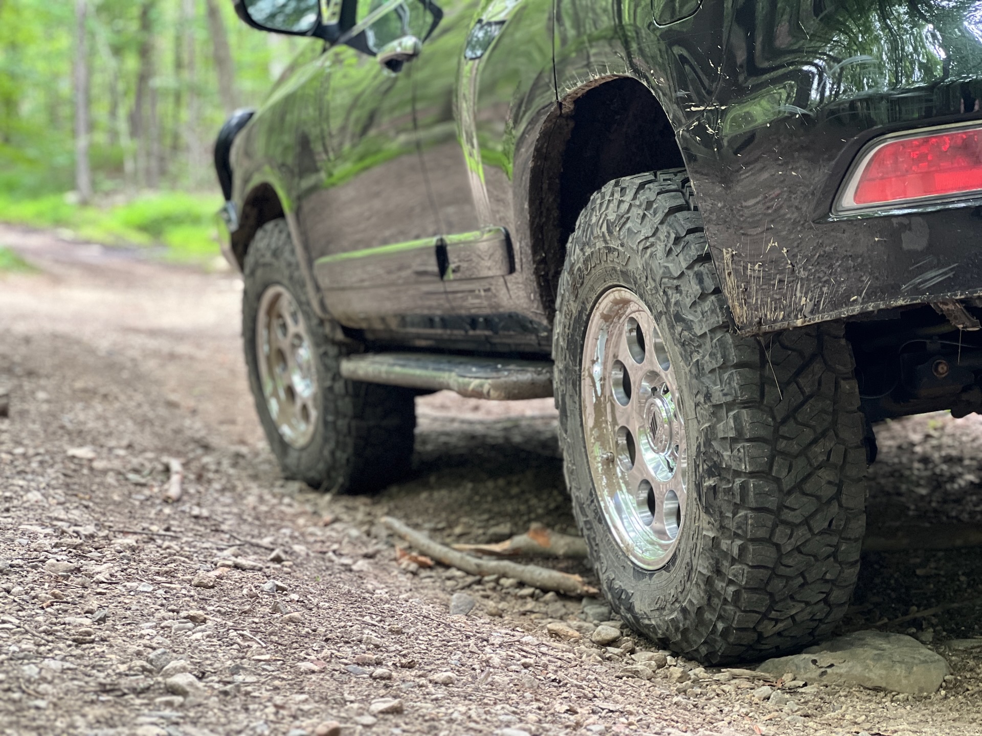 Toyo’s Open Country R/T Trail rugged terrain tire in the pizza-cutter 255/80/17 size were the first part of the puzzle. Skinny tires, as my friend Kai at Tinkerer’s Adventure put it, minimize rolling resistance to optimize fuel economy and retain stock-like driving characteristics while also allowing for the largest relative contact patch when aired down. I’ve been a fan of tall, narrow tires for years now. The Toyos are 33.1” tall and 10.0” wide while ticking at a light 52 pounds even despite their E load rating, and paired with the wheels the package is a reasonable 78.3 lbs/corner.