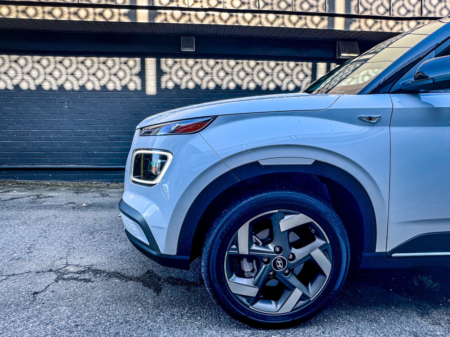 There is something immediately plucky and likable about the Venue. It’s a great size and unique design that stands out without being weird for the sake of being weird. I love the strong profile; it looks like a little training shoe. Plus, the front and rear are generally bereft of frivolous design elements—unless you count the 16 little stars on either side below the reversing lights. Those aside, it’s all pretty simple and elegant for a small car.