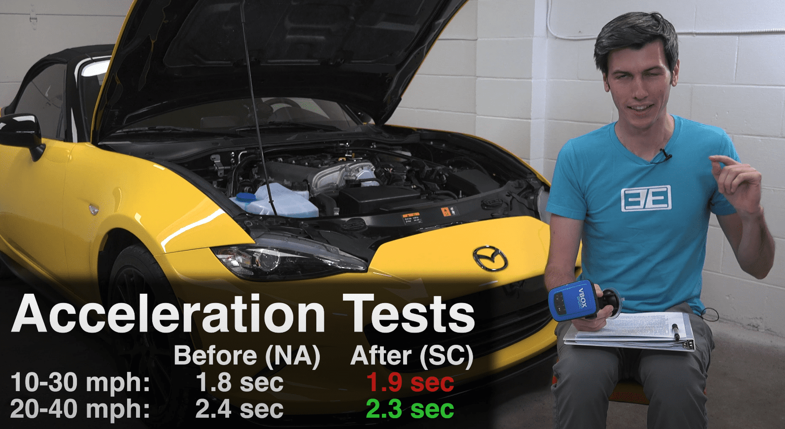 Friend of Hooniverse Jason Fenske is supercharging his ND Miata. We showed you the install video recently. Jason and his buddy Charles (the Humble Mechanic) installed the supercharger, flashed the ECU, and now Jason is driving his souped-up, more powerful, faster Miata… except it’s not faster. Somehow, it’s now slower.