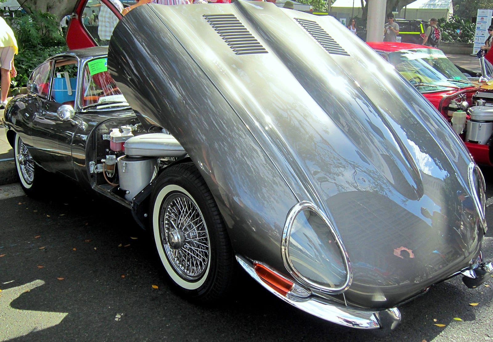 Starting off with a classic we have the Jaguar E-Type. One of the best of the best, the long V12 must be viewed through the clamshell. The craftsmanship is so rustic and so thought out. The way that it wraps all the way around and it’s sheer size makes it truly unique. There are no secrets about it, no hidden pipes or hoses, it’s all out there. As if this wasn’t already one of the most beautiful cars of all time, it has a perfect window into one of its signature features.
