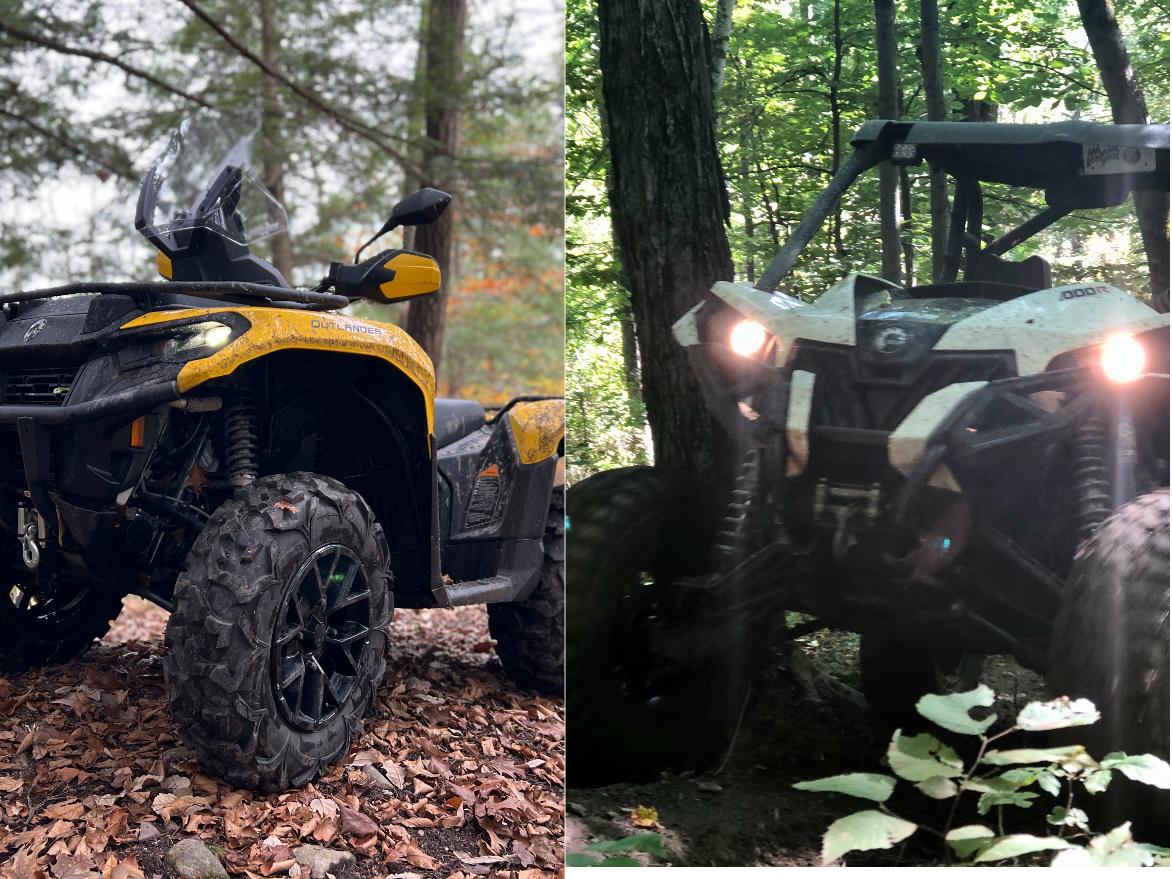 The Outlander is as comfortable a ride as you’ll find on an ATV, but at higher speeds we find the wider Maverick to feel more sturdy. Not to discredit the Outlander, as this is more of a reflection in general as most side-by-sides we’ve driven would compare to ATVs the same. However, on tighter trails which are more prevalent in the New York area where we tested these machines, there’s inevitably going to be an innate advantage to the Outlander due to trails being tighter and windier. In these circumstances, the handlebars allow you to quickly change direction at the drop of a dime, which combined with an incredibly smaller turning radius makes the Outlander, or any ATV in comparison to a side-by-side, superior.
