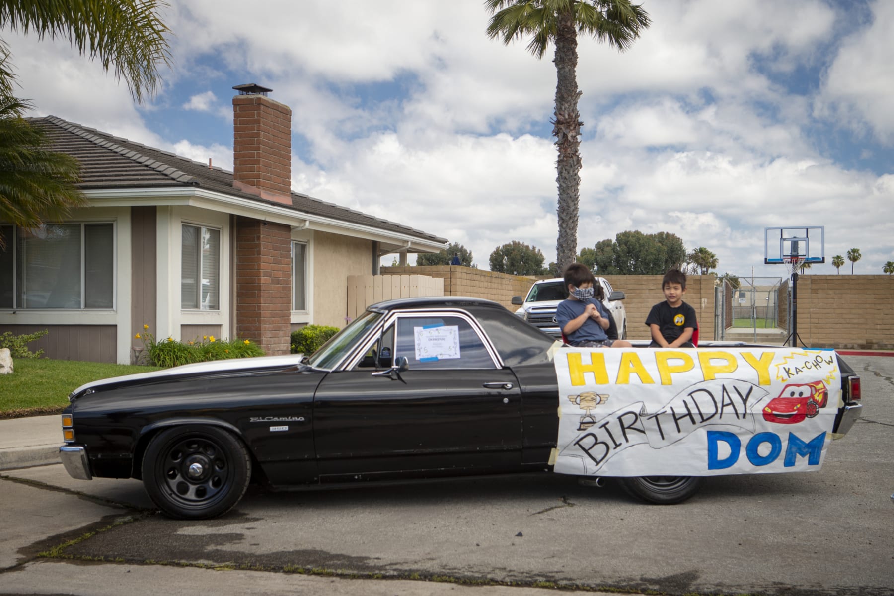 You see, Anthony loves cars and so do his boys. They attend the legendary Donut Derelicts show in Huntington Beach, CA as often as they can. The kids get to hang out with dad in his El Camino, Chevelle, or Nova (which is actually mom’s car). So the idea of having a few cars drive by sounded great to everyone. Anthony put out a call on social media and the response was… impressive.