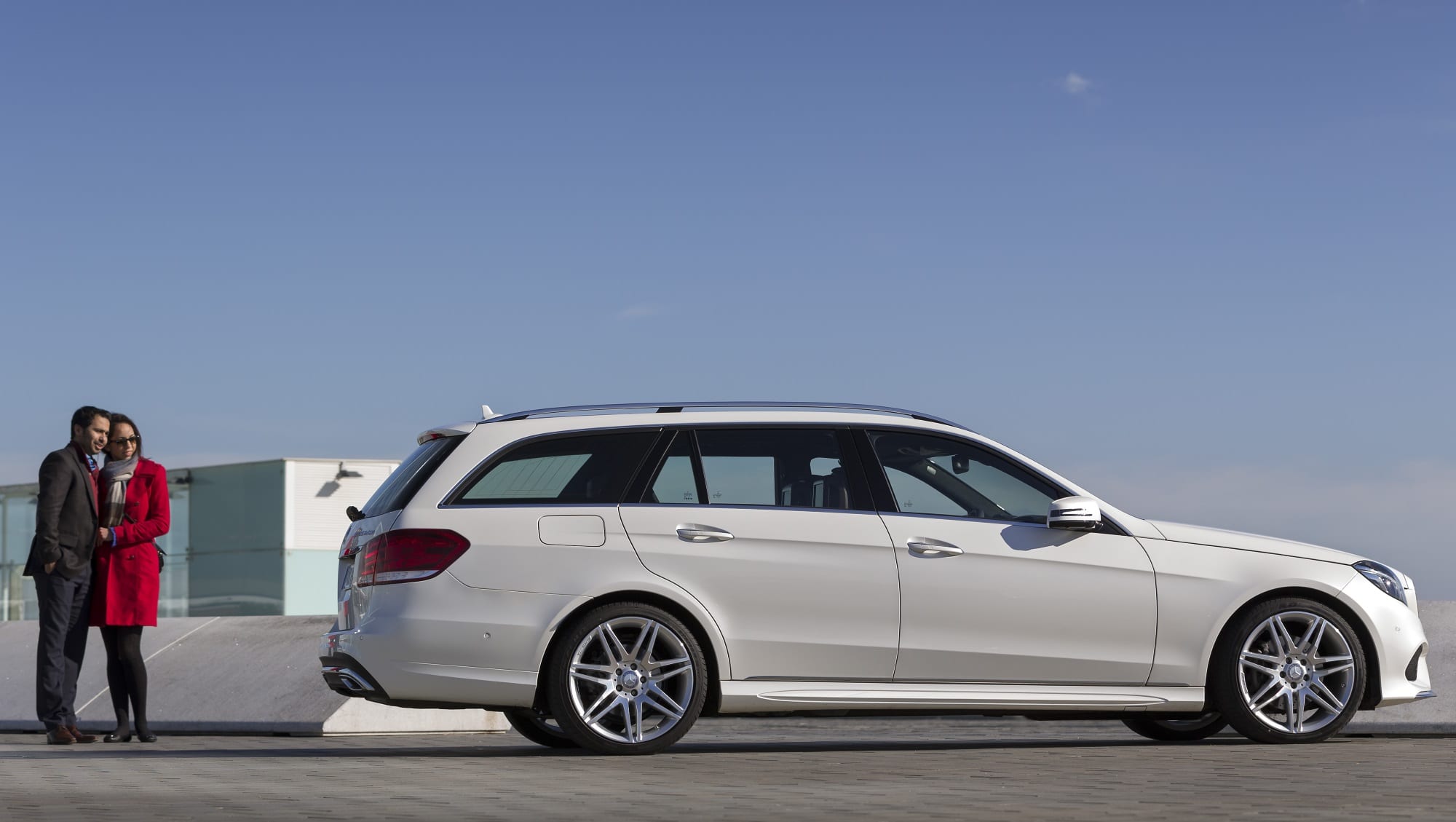 “Hey, isn’t that the new 2013 E 300 BlueTec HYBRID Estate, AVANTGARDE with AMG sports package, in diamond white color?”