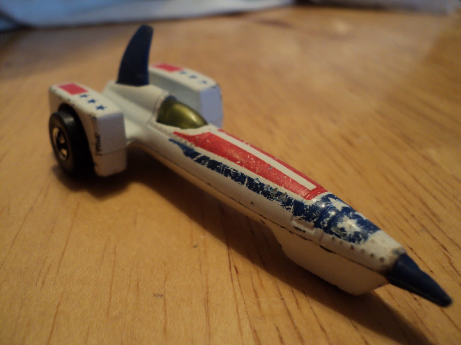 It was important to me to keep my Matchbox cars nice (I still have them on display) so I didn't play with them roughly. I did have some Hot Wheels and similar free-wheeling toy cars for use on gravity loop tracks. The coolest thing, though, was a slot car track with gummed pegs that could be used with any car with a flat bottom. There was also a Major Matt Mason lunar rover with one giant unsteerable tread that would climb anything, within reason and battery life.