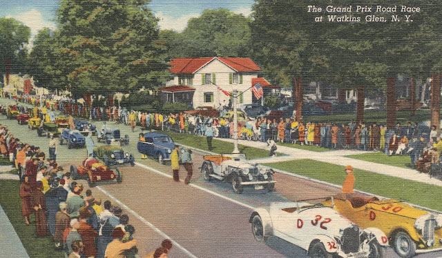 That's just a tinted photograph on that card, what they did before color photos could be printed easily. But yeah, Watkins Glen has some serious race history under its belt. I am deeply envious of your customer for having seen some of the early stuff.