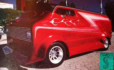 Too bad about this. Vans will be the douchebag craze about twenty minutes from now. We all think they're pretty awesome at this point, but I remember how stupid custom vans really were in the seventies. Remember, no more muscle cars, big 1973 bumpers, Vegas, Pintos, catalytic converters, Brougham editions and disco. CB radios. Those were the days of custom vans. They were the douchebag ride back then, no denying it. Shag carpet on the walls, floors and ceiling, captain's chairs, custom glass windows etched with a titted female figure and miles of pinstriping were really lame back then, and will be just as lame now when it's cool all over again. The seventies really sucked. I was a teenager then, and hated every minute of that poser decade.