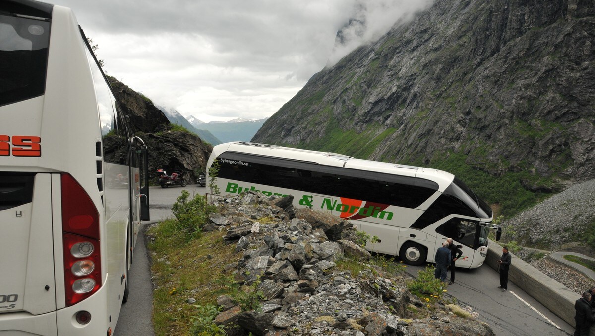 I like to post photos of “Trollstigen”, one of Norway’s most known roads. Today, a bus managed to get stuck in one of the bends:
