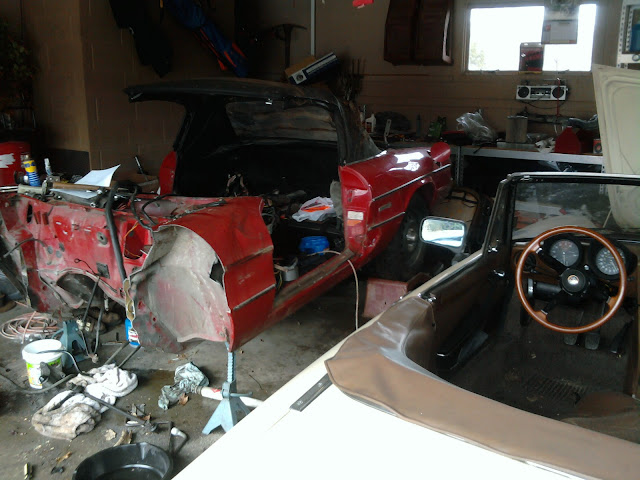 Yeah, I really want the yellow one back on the road in time for spring driving, but I need to get rid of the red one so I have room to work. I've never broken a car before, it's pretty grueling if you're determined to save every good part.
