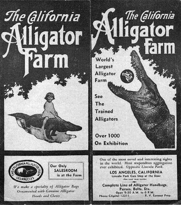 Ah, The Alligator Farm. Later (1953-1984) it was next to Knott's Berry Farm. I remember my parents taking me there ~1960, They had some huge gators – don't recall any saddled up though…