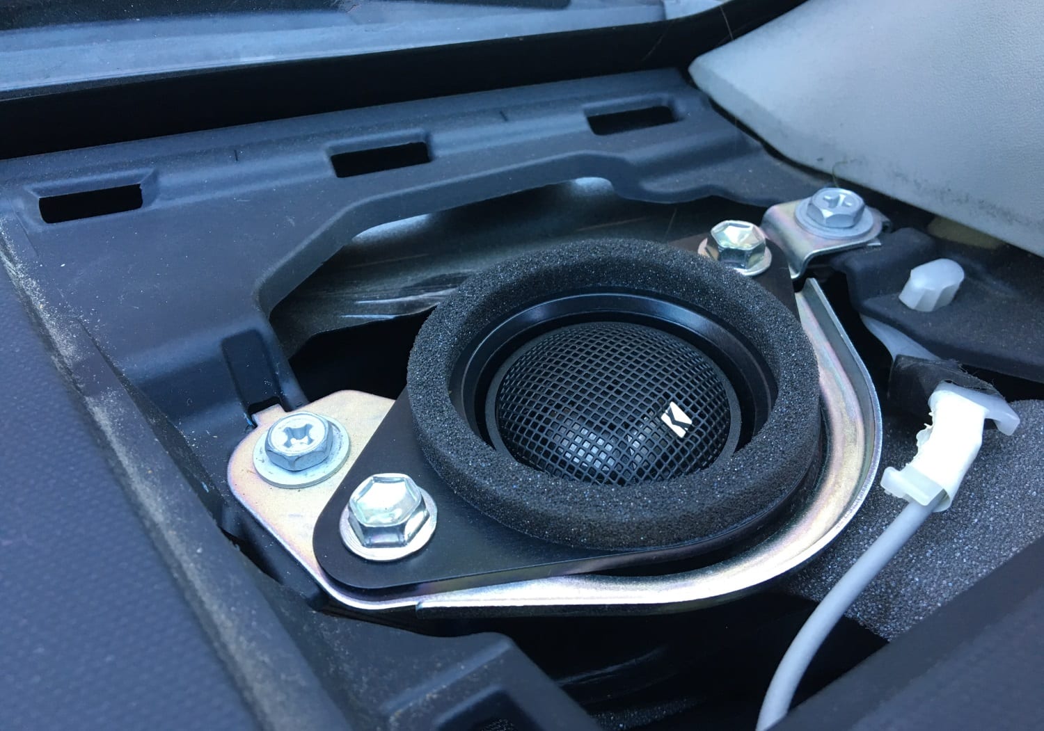 Amazon Prime kicked it over in two days. It took exactly four minutes to pop the dash speaker cover, unbolt the factory speaker (tweeter?), disconnect it, and reverse the procedure with the new Kicker speaker. Another four minutes for the driver’s side. Make sure to use a trim removal tool and not a screwdriver to remove the covers.
