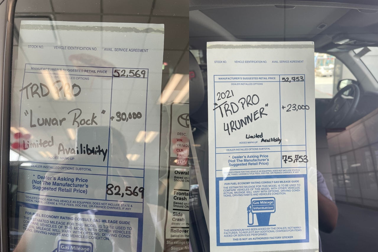 According to Reddit, Millennium Toyota in Garden City, Long Island (the New York Long Island, not that other Long Island) is marking up their 4Runner TRD Pro inventory by as much as $30,000. Their website, which I won’t link to, lists five 4Runners in stock. Stated on the site are MSRP and “call for price” selling prices. Fuck all those people. Don’t ever pay over sticker for a new car, especially a mainstream car that the automakers sell more than 100,000 of every year. And to hell with all the scumbag dealers up-marking their shit like this.