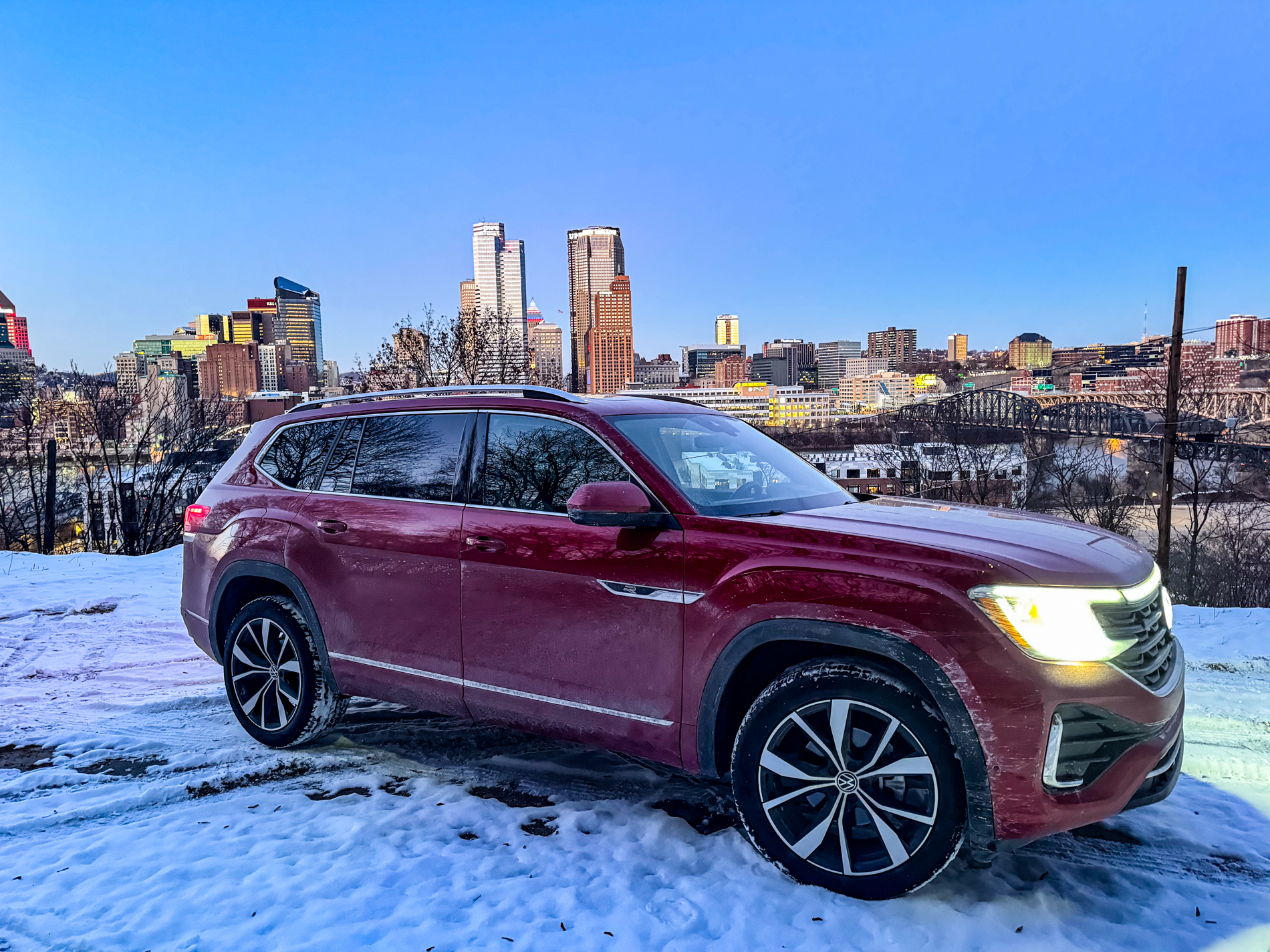Road trips are a time-honored tradition here in the States. Well, they could also be elsewhere, but I don’t live there. The week this 2024 VW Atlas arrived to test, I had just purchased a new vehicle (more on that soon). As excited as I was to take it on a road trip, it came with summer tires, and the upcoming road trip was to Pittsburgh for a youth hockey tournament. As you can see from the pics, snow was on the ground, so I hopped in the AWD VW SUV and headed north. Let’s see how it did.
