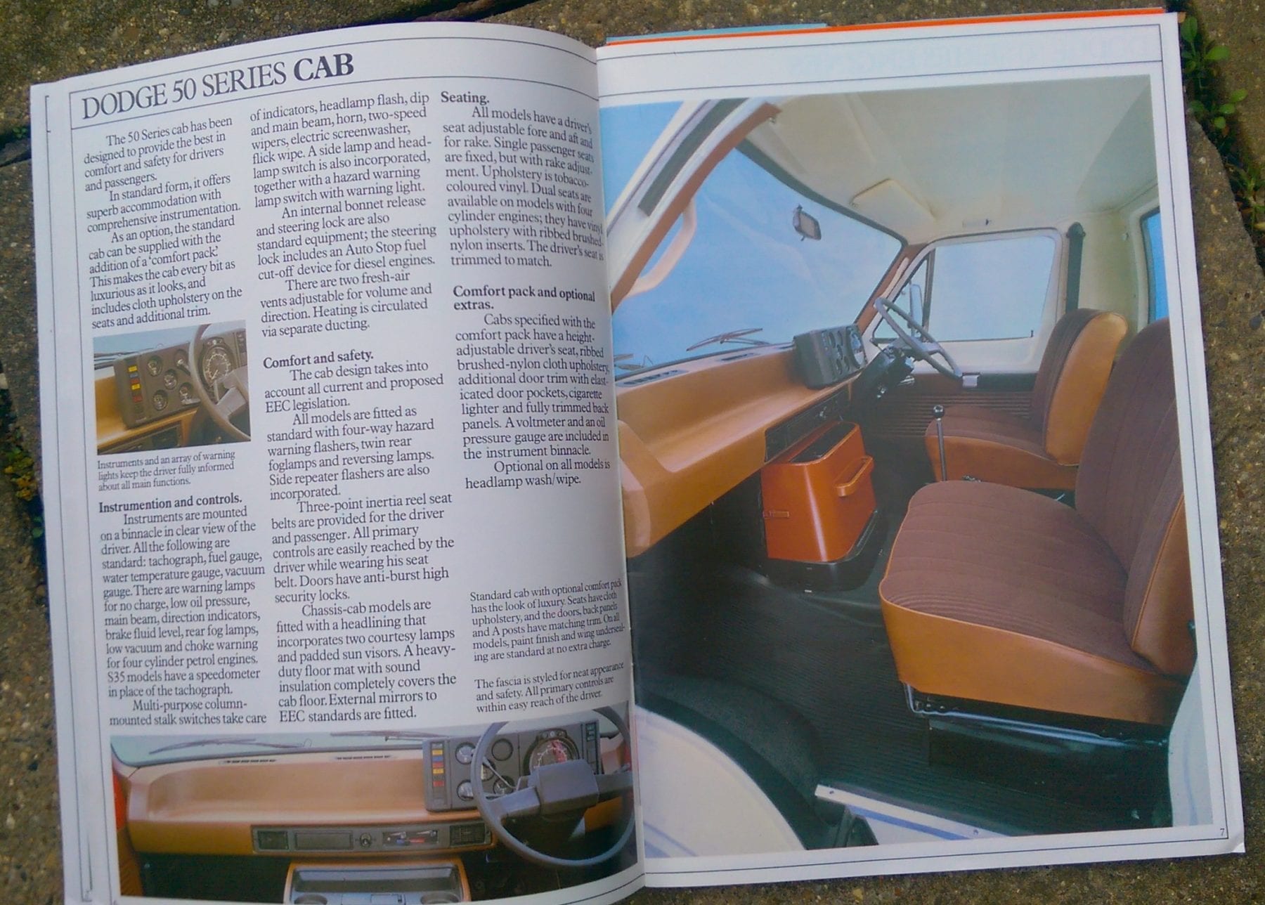 “In standard form, it offers superb accommodation with comprehensive instrumentation” Curiously, this actually looks quite a pleasing design, though I have heard accounts that time in the cabin of an S50 was time spent having your senses pummelled into confused oblivion by vibratory overload. But these were all complaints from people who were probably overworked, underpaid, under-appreciated and overruled. They were primarily places of work- I’ve not found much evidence of motorhome conversions like you’d find with the Transit or Bedford CF. And yeah, I know American campsites in the ‘seventies resonated to the burble of Tradesman-based Class C RVs and dayvans, they just didn’t really make it over here. The UK military loved them, though. The army were attracted by the load capacity capabilities of the the 4×4 version, modified by Reynolds-Boughton as the RB44, and were no doubt encouraged by the British content. In fact the Dodge 50 lasted well into the Peugeot takoever of Chrysler Europe, with Renault helping to host production in place of Dunstable. I saw one locally a few years ago. Hasn’t been back since. (All images are of original manufacturers publicity materials, photographed by me. I like big vans and I cannot lie. There’s a song in that somewhere)