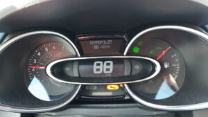 There are no less than three sources of information for the cruise control: Two rings, and the text. Blue light symbols in European cars would be the high beams, which weren’t on since this was during the day. One of the symbols is DLR’s, the other is proper front lights. The wrench signals that a service is in order. That’s how I got the car.
