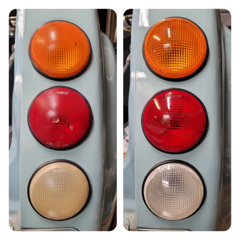 Even seemingly minor restoration work can yield surprising dividends. I decided that my dull Nissan Pao tail lamps could use a little razzle-dazzle so I disassembled them, sanded them with 400 grit, put them in my bench vice, chucked a buffing pad to the drill and hit them with rubbing compound. My Pao went from having butt-cataracts to a new shiny butt-face all for the heft cost of zilch.
