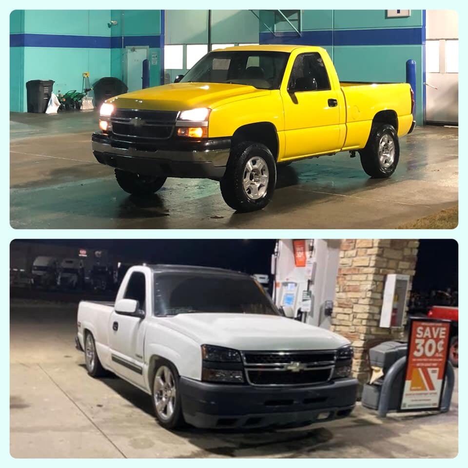 The two met up and exchanged hoods. Now one is all-yellow and the other is all-white as they were when they left the factory. A perfect ending to a short story. It is the closest thing to a fairy tale ending that will come from the Denver Dropped Trucks Facebook group.