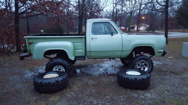 I have a 1978 Dodge powerwagon pickup, it is a four wheel drive, it has a lift.does Not have big tires, it has no motor or tranny.does have transfer case., I’m asking $1,300, it is a stepside, it has very little rust on it. Will trade for a 1998 and up Dodge 4×4 truck , or an old Dodge car.by the time you buy a lift &put it in,you’ll have as much money,&alot more time lost. Thank you