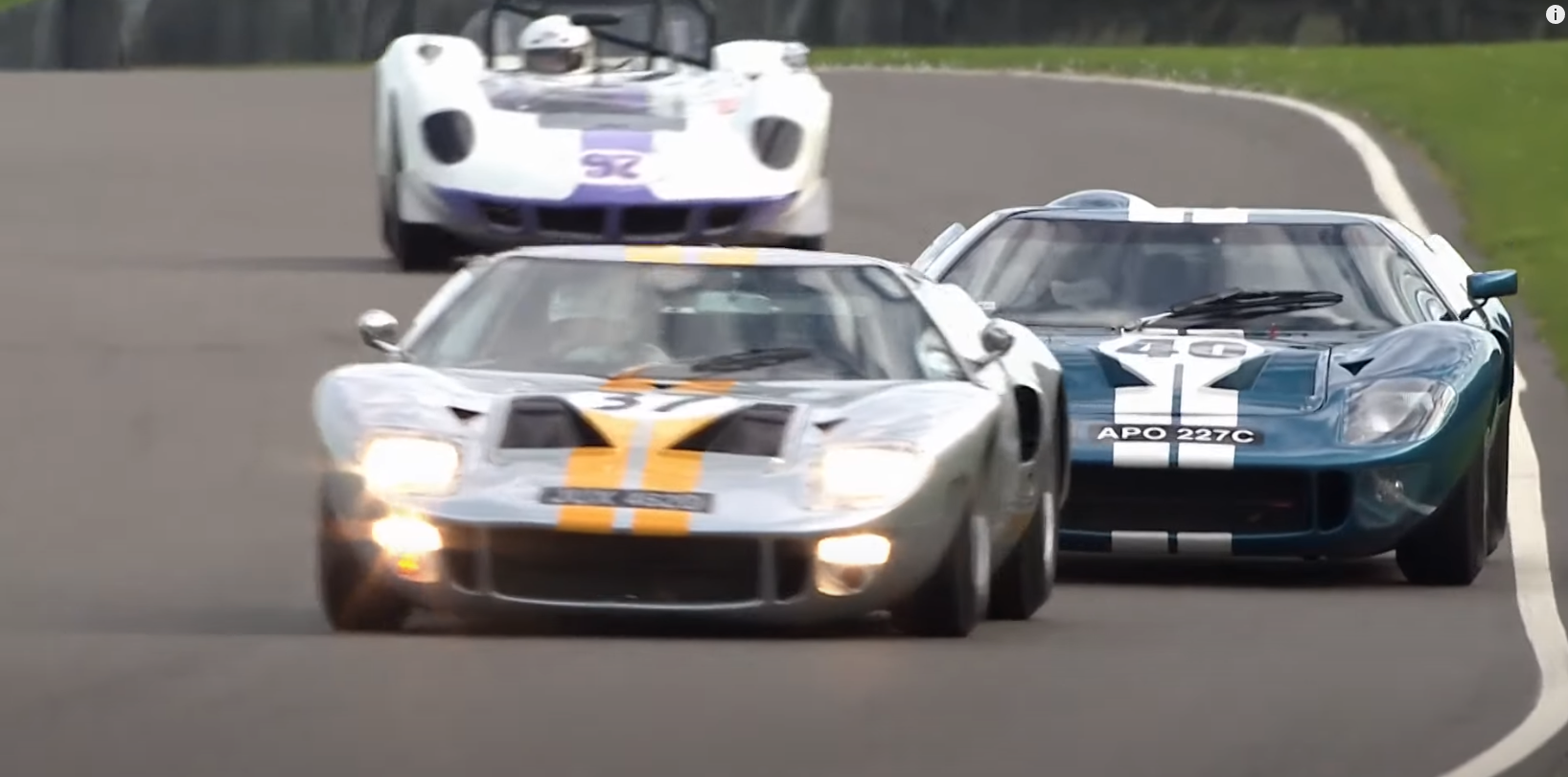 Andre Lotterer is in the blue car. Gordon Shedden is wheeling in the silver car. One of these men is a multiple British Touring Car champion. The other is a multiple winner at Le Mans. When you talk about great showdowns, this is a prime example of that. A pair of Ford GT40s rip around the Goodwood circuit with real racers at the helms. The fighting is tight, aggressive, and clean. And it’s all a joy to watch.