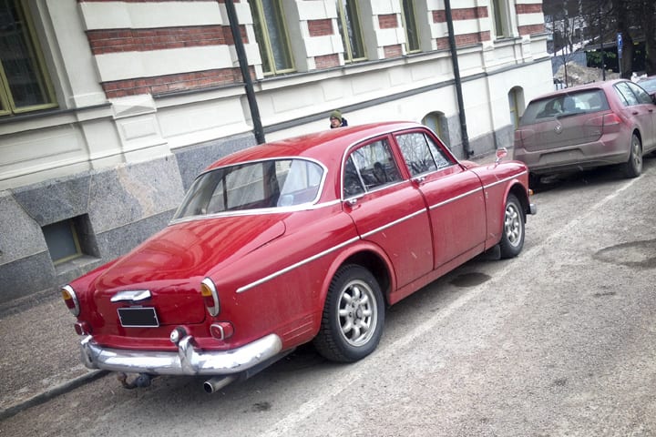 This 1966 Volvo 122S is probably the nicest car I’ve seen this weekend. I shot it in Jyväskylä, central Finland, just casually sitting on a side street not far from the town centre. It’s wearing the right kind of Minilites, aux lights, mirrors, everything, and the paint is the right shade of brick red.
