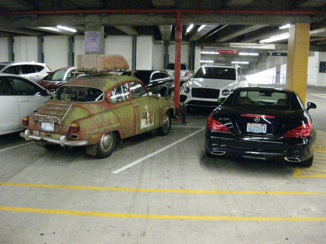 If these are your colleagues’ cars, I suggest you use the photo in this year’s salary negotiations… On a serious note, there’s no doubt which vehicle is the most intriguing here, good to see the SAAB run again!