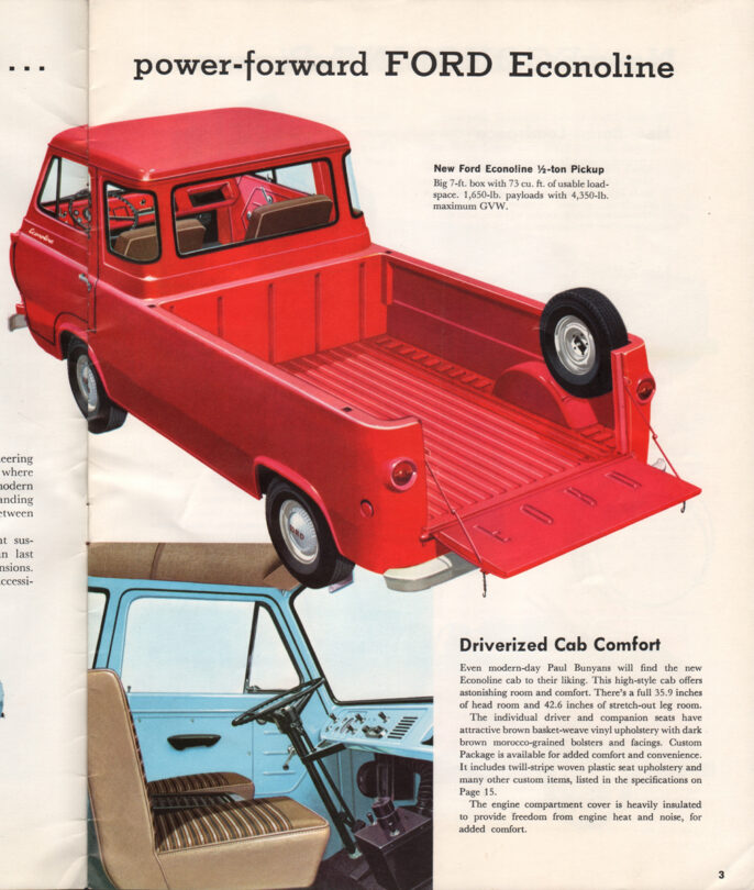 Of course one of the recomended videos was of the time GM pulled that stunt in a dealer training film for the Corvair Pickup. They too had to do some modifications to make it happen. They removed the standard tail gate and somehow fitted the shorter single wall tailgate from a full size truck. Presumably because it was lighter. they also removed the rear bumper which was originally standard with the Econoline Pickup. Then when they go to stop you can see that there is a passenger being active ballast, throwing himself against the windshield right as they start to stop.